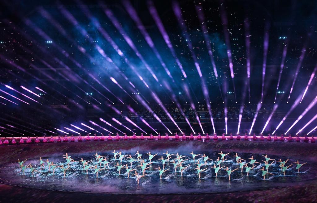 11月9日,第十五屆全國運(yùn)動(dòng)會(huì)開幕式在廣東奧林匹克體育中心舉行,圖為演員在開幕式現(xiàn)場表演。新華社記者 燕雁 攝