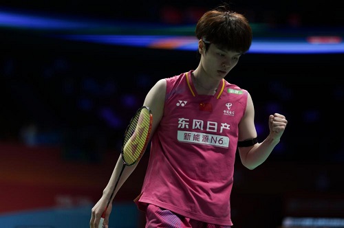 面對辛杜,二號種子王祉怡以21:18艱難拿下首局后,在第二局完全掌控局勢,以21:8鎖定八強(qiáng)門票。