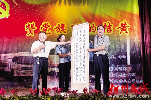 本報訊 7月3日晚8時,忻府區(qū)文聯(lián)、忻府區(qū)作家協(xié)會和遺山詩社在忻州市住建局禮堂共同舉辦了一場大型詩歌吟誦演唱會,用詩的語言、歌的韻律抒發(fā)了對黨的祝福和對環(huán)衛(wèi)工人的贊美。7月1日是黨的生日,在此之際,他們用詩歌表達對黨的熱愛,也表達對在黨旗下默默付出的勞動者們的敬意。