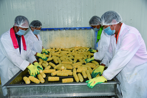 8月10日上午,已是代縣金九州農產品實業(yè)有限公司加工生產水果玉米的第5天,生產車間內外車水馬龍、熱火朝天,一派緊張繁忙的景象。