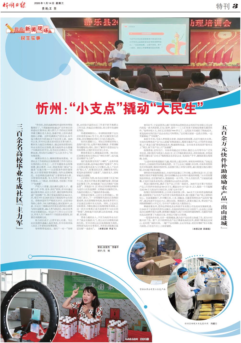 青春力量的注入,不僅為高校畢業(yè)生打開了就業(yè)實踐的大門,更讓社區(qū)治理煥發(fā)新的生機。忻州市將以社區(qū)助理制度為契機,持續(xù)深化民生實事落實,用青春動能激活基層治理“一池春水”。(本報記者喬龍飛)
