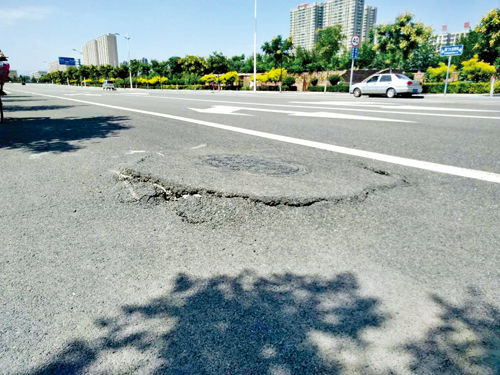 城區(qū)雁門大道南街與團結中街北巷交叉路口,有一下水井蓋周邊嚴重破損,多處裂縫,存在安全隱患。希望有關部門盡快予以修補。張林全 攝于8月24日