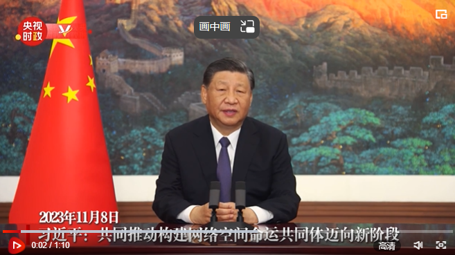 “互聯(lián)網(wǎng)日益成為推動發(fā)展的新動能、維護安全的新疆域、文明互鑒的新平臺,構(gòu)建網(wǎng)絡(luò)空間命運共同體既是回答時代課題的必然選擇,也是國際社會的共同呼聲?!?1月8日,國家主席習近平向2023年世界互聯(lián)網(wǎng)大會烏鎮(zhèn)峰會開幕式發(fā)表視頻致辭。