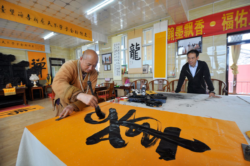 29日,中國佛教講經(jīng)交流會在五臺山召開之際,記者走訪了東臺頂望海寺釋覺一法師,他在勤修佛法的同時在書畫藝術(shù)上也自成一家。他認為,佛法與書畫關(guān)系密切相通之處,學(xué)習(xí)佛法可促進書法境界的提升,有助于佛法的弘揚。