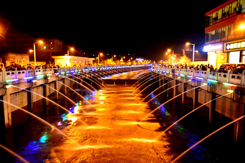 10月1日,國慶節(jié),代縣縣城關溝河景觀工程正式竣工蓄水。河道中,兩道鋼閘壩內,清清的河水碧波蕩漾,河道兩岸是兩條6米寬的景觀大道。道路內側,路燈成行,綠樹成蔭,風光如畫。伴隨著優(yōu)美的樂曲,河道兩側的音樂噴泉噴珠吐玉,不斷變化著造型,在金色的陽光下不時閃現(xiàn)出道道彩虹。到了夜間,音樂噴泉在明亮的燈光映襯下,更是五彩繽紛,赤橙黃綠青藍紫,猶如彩練當空舞。成為歷史文化名城一道亮麗的風景。