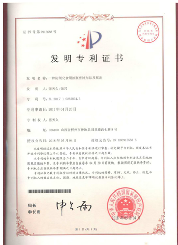 發(fā)明者張興父子從2010年創(chuàng)辦山西省神池縣糧油機(jī)械研究所以來,共獲國家專利24,其中發(fā)明4項(xiàng)。“食用油抗氧化包裝”是最近的一項(xiàng)科研成果。張興告訴記者,為了防止氧化,市面上的食用油絕大多數(shù)采用添加抗氧化劑,同時(shí)使用小包裝。而神池胡油,從不添加抗氧化劑。實(shí)驗(yàn)證明,零星食用不出一個(gè)月氧化值就會(huì)超過標(biāo)準(zhǔn),日久愈甚。使用這個(gè)新發(fā)明的食用油包裝,存儲(chǔ)和食用期達(dá)到2年之久,氧化值為5.5,仍在GB/T5538標(biāo)準(zhǔn)≤6范圍之內(nèi)。