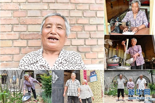 鄭引蘭,女,1949年出生,山西省長治市潞城區(qū)西靳村人,2015年因家人患病而被納入建檔立卡貧困戶?,F(xiàn)在,多項扶貧政策讓全家人的生活有了明顯改善,當(dāng)?shù)卣畮椭7扛脑斓母G洞也即將完工。 左上:鄭引蘭肖像;右上:鄭引蘭在使用縫紉機(jī);右中:鄭引蘭在廚房盛飯;右下:鄭引蘭(中)一家人合影;下中:鄭引蘭和兒子走出家門;下左:鄭引蘭在院子里給植物澆水(拼版照片,6月12日攝)。 地處晉東南的山西省長治市,位于由太行山、太岳山環(huán)繞而成的上黨盆地中。在群山中、崖壁上,許多村莊自然條件惡劣,基礎(chǔ)設(shè)施落后,脫貧致富是大山深處人們的迫切心愿。 近年來,一場場脫貧攻堅戰(zhàn),在一個個深山村打響。政府全力探索脫貧路徑的同時,山區(qū)百姓因地制宜,靠自己的雙手和智慧走上致富路,交出了一份扎實的脫貧答卷。 記者在太行山、太岳山一路尋訪,記錄下多位70歲老人的生活。這些共和國的同齡人,親歷了山鄉(xiāng)的巨變,見證著長治山區(qū)脫貧攻堅偉大工程的一步步推進(jìn)。 新華社記者 曹陽 攝