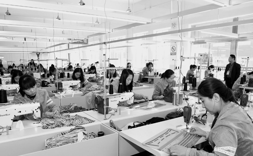 4月16日,河曲縣職業(yè)教育中心服裝加工車間里技術(shù)工人正在加班加點趕制夏季服飾。為促進貧困勞動力轉(zhuǎn)移就業(yè),該縣職教中心去年引進江蘇省常熟市祥鼎祥服飾有限公司,并與之簽訂校企合作協(xié)議,有效帶動農(nóng)村貧困勞動力轉(zhuǎn)移就業(yè)。目前已有83名經(jīng)過培訓(xùn)的農(nóng)村貧困婦女成為服裝加工技術(shù)工人,月收入2000多元。(鄔耿杰 攝)