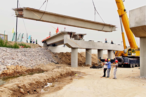 牧馬河橋施工現(xiàn)場(chǎng)。(智芝龍 趙曉煒 攝)