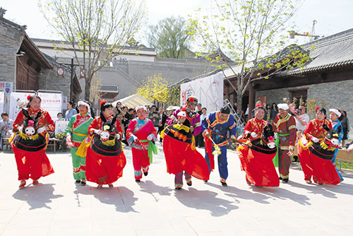 首期市集為期三天,今后將不定期舉辦此類(lèi)活動(dòng),為全國(guó)各地的民間藝人提供一個(gè)創(chuàng)業(yè)、立業(yè)的平臺(tái),同時(shí)也為秀容古城的旅游發(fā)展注入新的活力,打造秀容古城旅游發(fā)展新地標(biāo)。圖為創(chuàng)意市集上的民俗表演張林泉李春達(dá)攝影報(bào)道