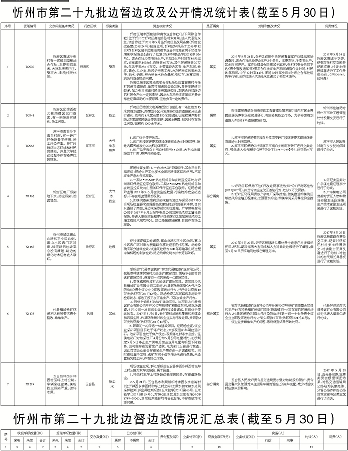 我市高度重視,立即組織查處,截至5月30日,督辦的群眾反映問題7件已辦結(jié)。其中,確認屬實4件,部分屬實3件。對于屬實和部分屬實已辦結(jié)的環(huán)保問題,分別采取了相應(yīng)處理措施,其中罰款18萬元,對13名相關(guān)責任人進行了責任追究。對7件群眾反映問題調(diào)查處理情況進行了信息公開。