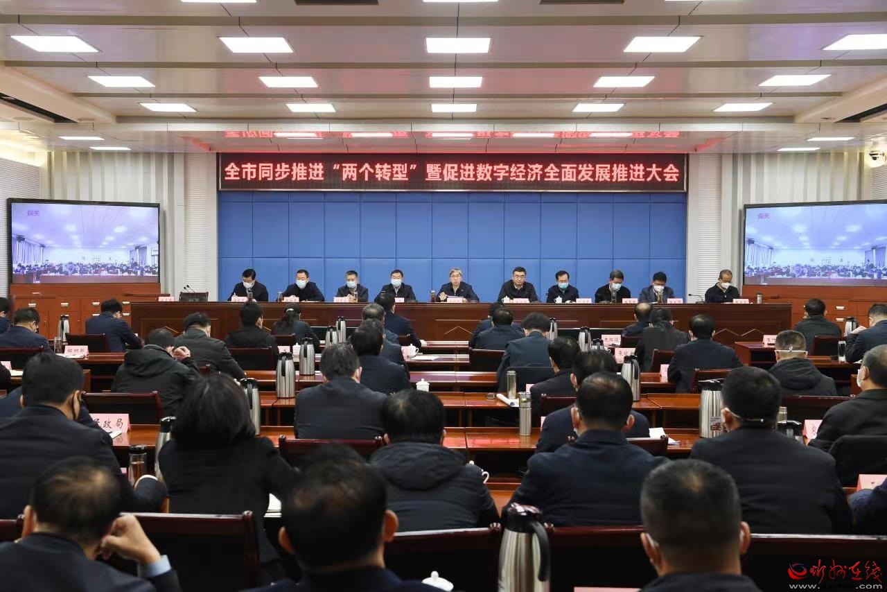 12月9日,全市同步推進(jìn)“兩個轉(zhuǎn)型”暨促進(jìn)數(shù)字經(jīng)濟(jì)全面發(fā)展大會召開。市委書記朱曉東出席會議并講話。市委副書記、市長李建國主持會議并講話,市人大常委會主任王珍,市政協(xié)主席范建民,市領(lǐng)導(dǎo)劉卓良、趙新年、張文偉、溫建軍、張宇光等出席。