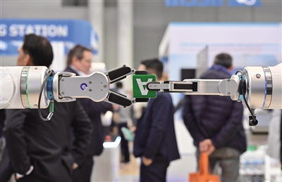 在近日舉行的2024年德國(guó)漢諾威工業(yè)博覽會(huì)上,人工智能成為重點(diǎn)關(guān)注的領(lǐng)域之一。圖為會(huì)上一款機(jī)器人在演示傳遞物品。新華社記者 任鵬飛 攝