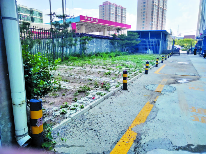 本報(bào)“百姓直通車”欄目記者于6月30日上午前往該小區(qū)進(jìn)行了采訪。該小區(qū)東門設(shè)置于云中北路與雁門東大道路口的西北角,大門的行人出入口開了一家家具店,店門開在行人過道上,店門的右側(cè)設(shè)置了一截不銹鋼護(hù)欄,好像是在提請行人“不能直行應(yīng)拐入行車道進(jìn)入小區(qū)”。進(jìn)入小區(qū)后,記者向小區(qū)居民了解到,該小區(qū)共有4棟樓,從南到北依序排列,位于南面的1號樓車庫東端有臨時搭建的彩鋼房,房門是用鋼筋焊接的簡易柵欄,面積大概有15平方米,里面空空如也,不知是所做何用,問及居民時也是閃爍其辭說,好像是存車的吧?隨后記者來到了4號樓車庫的東端,大概有8個露天車位被人設(shè)置地樁并鎖死,里面長滿了雜草。當(dāng)有居民路過,記者問及何故,居民也是借故推脫走開。此處也有一臨時搭建的彩鋼房,里面堆滿了雜物。這些私搭亂建亂設(shè)地樁的現(xiàn)象,究竟是物業(yè)所為?還是個別住戶私搭亂建?帶著這些問題記者找到了小區(qū)保安室(門房),保安室內(nèi)有4人圍坐在一起正在專心致志打撲克,記者問及相關(guān)問題,他們以管事的不在為由推脫了事。