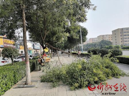 7月23日上午,記者途經(jīng)忻州城區(qū)建設(shè)北路盧野村路段時發(fā)現(xiàn),路邊有棵樹的樹枝發(fā)生斷裂,橫落在非機動車道中央。斷裂的樹枝最粗直徑10多厘米,整個樹枝占據(jù)了近三分之二的路面,既影響交通通暢,又存在安全隱患。希望相關(guān)部門對斷裂的樹枝及時進行處理,盡快恢復(fù)道路暢通。張志遠(yuǎn) 攝