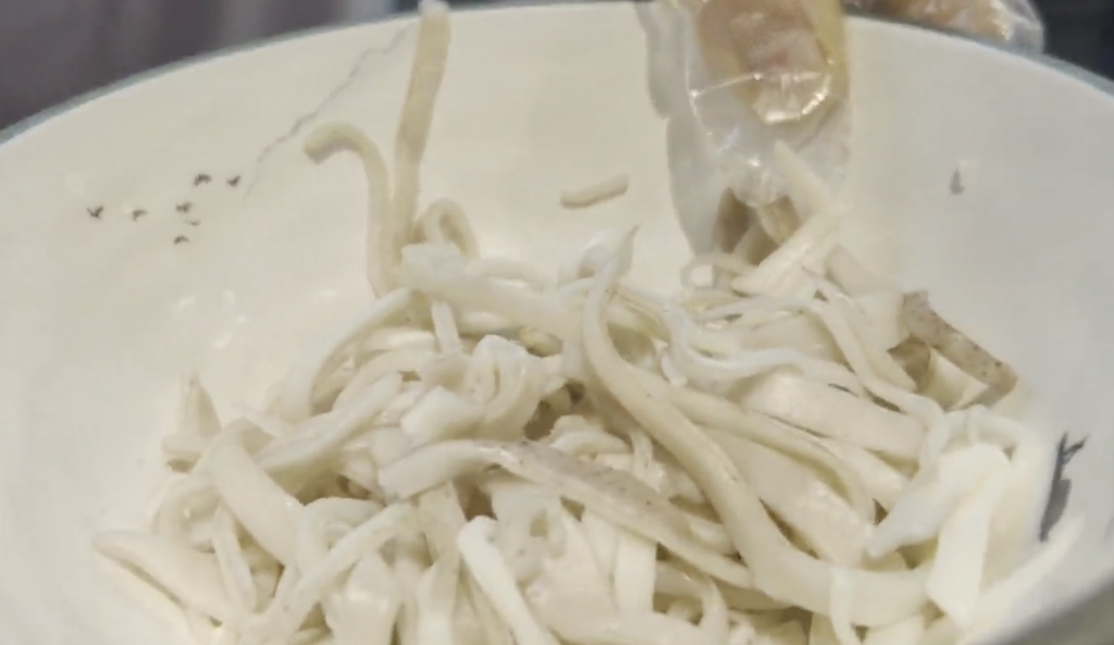 圖為剪刀面制作過程。新華社記者 王怡靜 攝??關(guān)于“清徐沾片子”則是一個(gè)節(jié)儉的故事。沾片子是一種以各種蔬菜蘸面煮食的面食,也被稱為菜疙瘩、蘸尖尖或拖葉子。為了避免浪費(fèi)家里剩的面粉、蔬菜,農(nóng)民們下地干活兒前,會(huì)將各種蔬菜切成薄片,然后用面粉和水調(diào)成的面糊包裹,放入水中煮熟。以前沒有太多可食用的蔬菜,“沾片子”多用玉谷葉或其他野菜,現(xiàn)在則出現(xiàn)了“沾豆角”“沾土豆”“沾茄子”等新吃法。