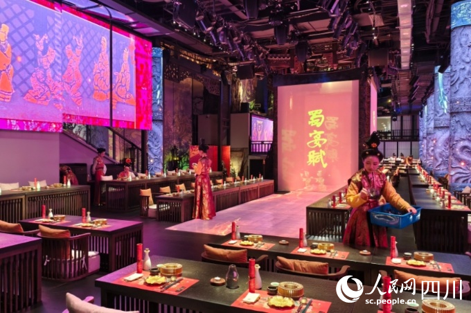 東郊記憶園區(qū)內以蜀地文化為創(chuàng)作背景,溯源中國傳統(tǒng)宴飲儀禮打造的全景沉浸式漢文化主題餐秀——蜀宴賦。人民網 趙祖樂攝 “我們希望東郊成為成都生活方式的微縮樣本,讓年輕人深度感受這里的文化底蘊與生活方式。”李佳佳透露,運營團隊平均年齡不足35歲,能精準捕捉年輕人需求,而園區(qū)內50余家本土主理人大多不愿離開,不少線上走紅品牌也紛紛將線下首店落地此處,大家看重的不僅是高人氣客流,更是主理人自發(fā)組織聯動活動形成的社群凝聚力,這種基于共同熱愛的聚集效應,讓園區(qū)擁有了獨特的商業(yè)生態(tài)。 這一切背后,離不開政府的保駕護航,為這場“三向奔赴”筑牢根基。東郊記憶藝術區(qū)管委會企業(yè)服務部部長曹青云介紹,政府從產業(yè)規(guī)劃之初便聚焦Z時代需求,布局了“影視音樂、電子競技、創(chuàng)意設計、直播經濟、潮流消費”五大細分賽道。服務層面秉持包容開放理念,為青年人才提供就業(yè)扶持、生活保障、子女教育等一站式配套支持,為創(chuàng)業(yè)者搭建寬松的發(fā)展環(huán)境并給予政策扶持。 “東郊記憶·成都國際時尚產業(yè)園是東郊記憶藝術區(qū)的‘園中園’之一,我們統(tǒng)籌規(guī)劃了十大紅倉文創(chuàng)產業(yè)園,目前9個園區(qū)已開園,各園區(qū)定位側重不同,有效避免同質化競爭,形成了文創(chuàng)產業(yè)集群效應。”曹青云說,政府希望通過打造優(yōu)質發(fā)展氛圍筑巢引鳳,推動三方實現同頻共振、共同成長。
