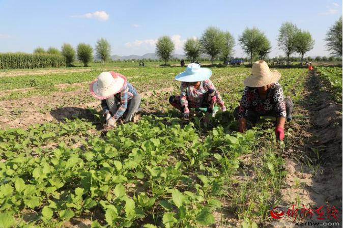 8月11日,原平市新原鄉(xiāng)平地泉村綠油油的芥菜長(zhǎng)勢(shì)喜人,農(nóng)民正在除草。近年來,該市大力調(diào)整農(nóng)業(yè)產(chǎn)業(yè)結(jié)構(gòu),通過復(fù)播“訂單秋菜”,鼓了農(nóng)民“錢袋子”。諸 震 攝
