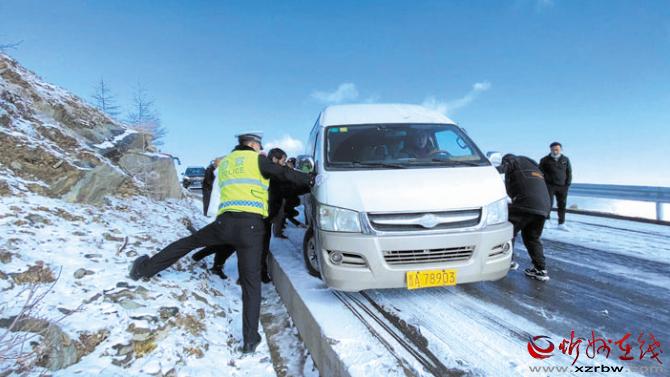 10月16日,五臺山景區(qū)境內(nèi)出現(xiàn)雨夾雪天氣,伴隨著氣溫下降,部分路段出現(xiàn)積雪。當(dāng)日7時(shí)許,五臺山公安分局接到游客報(bào)警稱,在景區(qū)北線鴻門巖路段,由于下雪后道路有大量積雪成冰,導(dǎo)致多輛大巴車和轎車受阻無法通行,請求援助。
