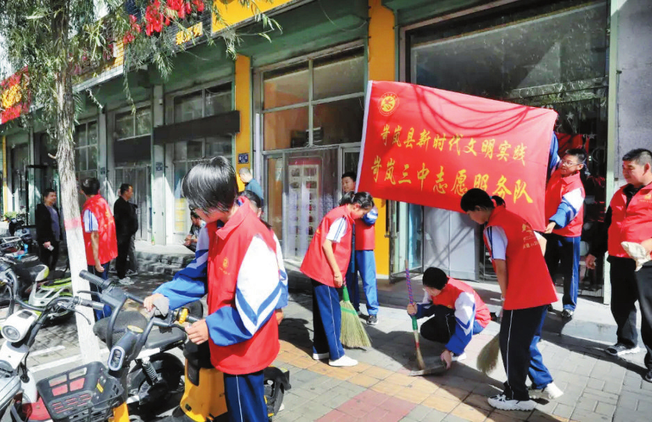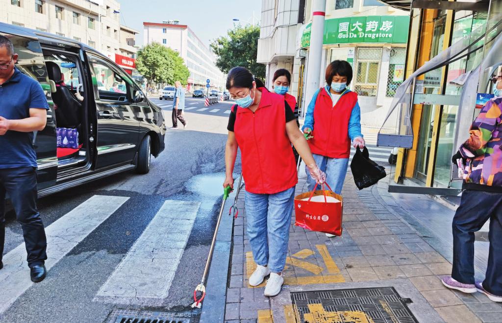 學(xué)生志愿者在街頭開展服務(wù)活動