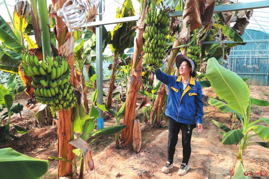 去年,侯學(xué)光在大棚開(kāi)始試種“中蕉九號(hào)”?!靶酶畢^(qū)的水土環(huán)境竟與蕉苗生長(zhǎng)條件高度契合,根系健壯少病害,首年就順利掛果。香蕉未熟時(shí)脆甜清香,成熟后軟糯可口,品質(zhì)不輸南方蕉?!彼d奮地向記者介紹說(shuō)。通過(guò)邀請(qǐng)專(zhuān)家改良土壤、施用自產(chǎn)有機(jī)肥、科學(xué)規(guī)劃間距,曾經(jīng)的邊角地已變身茂密蕉林。