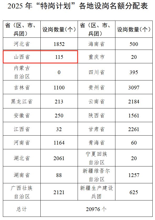 近日,教育部辦公廳、財(cái)政部辦公廳聯(lián)合印發(fā)《關(guān)于做好2025年農(nóng)村義務(wù)教育階段學(xué)校教師特設(shè)崗位計(jì)劃實(shí)施工作的通知》,全國(guó)計(jì)劃招聘特崗教師2萬名,其中山西計(jì)劃招聘115名。