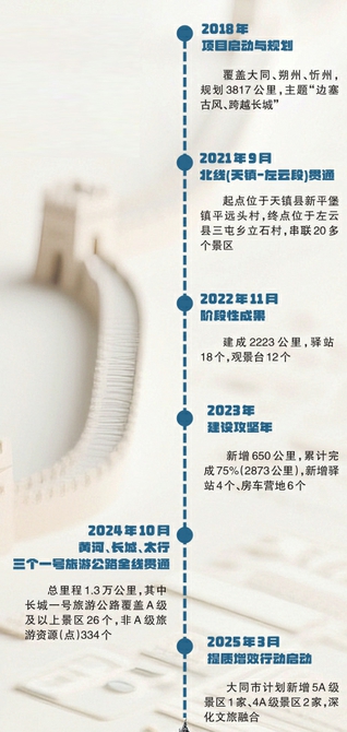 在廣袤的晉北大地,長城一號(hào)旅游公路宛如一條靈動(dòng)的絲帶,將山西大同、朔州、忻州三市的長城遺跡與自然人文景觀巧妙串聯(lián),成為了連接長城遺跡與游客的紐帶,讓歷史文化遺產(chǎn)在新時(shí)代煥發(fā)新活力。