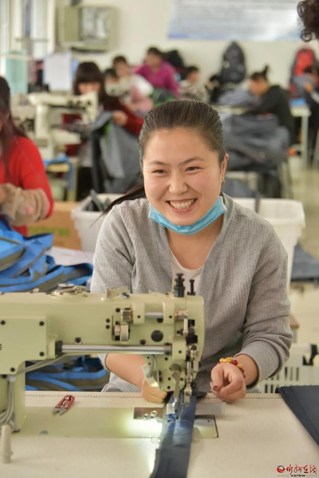 繁峙縣濱河移民小區(qū)箱包加工車間。忻州日報(bào)資料圖