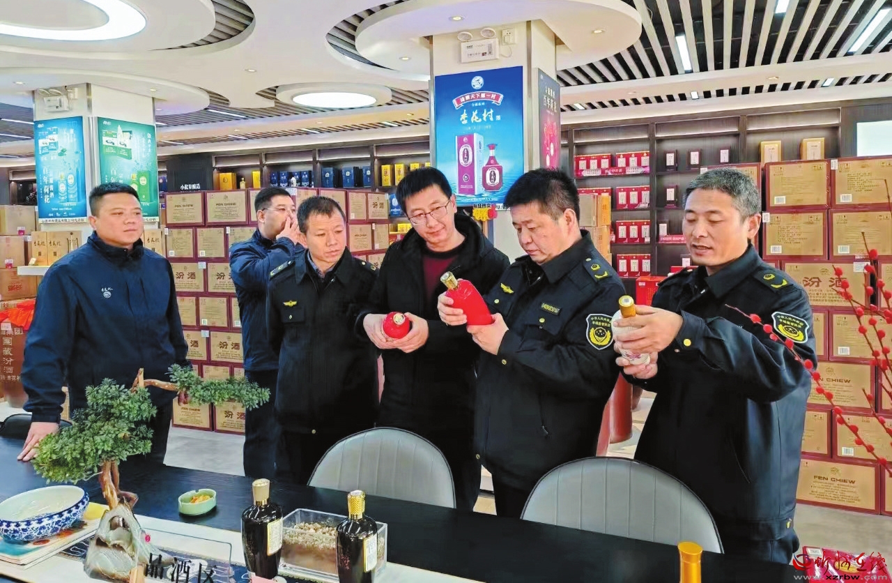 圖為市市場(chǎng)監(jiān)管局工作人員深入酒類經(jīng)銷門店檢查。