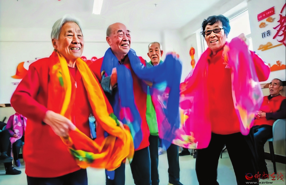 四個樓層的護理部都有大學生兼任文化娛樂專員,扛起組織引導老人們老有所學、老有所樂的擔子。每天上、下午各有兩小時內(nèi)容豐富的文體活動,鼓勵老人們發(fā)揮各自愛好與特長,組成興趣小組,開展讀書、唱歌、下棋、剪紙、跳舞、小手工制作等文化體育娛樂活動。每逢五一、國慶、新年等節(jié)日,大學生還要指導大家一起排練、演出自編的文藝節(jié)目。大家樹立起了積極的老齡觀,引發(fā)了樂度晚年、珍惜時光的生活興致,還涌現(xiàn)出一批“最美老寶貝”“最佳室友”。