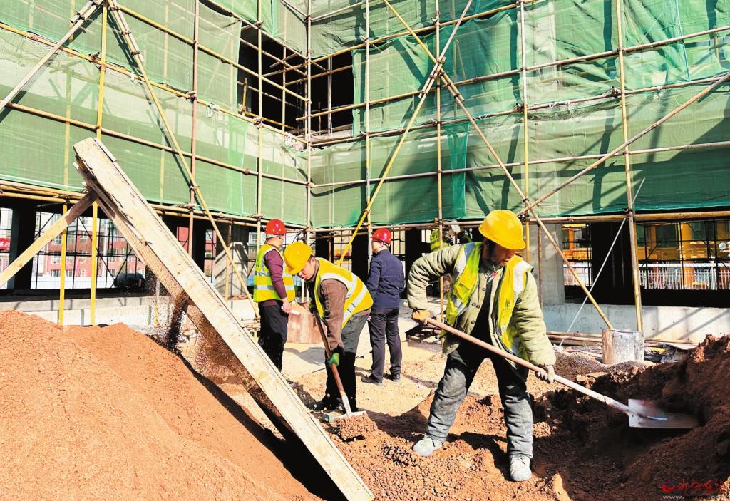 在河曲縣公辦示范性綜合托育服務機構建設項目施工現(xiàn)場可以看到,主體工程已經完工,工人師傅們正在加緊對室內進行地面作業(yè)。來到砌墻區(qū)域現(xiàn)場,可以看到師傅們相互配合,動作利落連貫地接遞磚塊,默契地完成砌筑動作,大大提高了砌筑效率。在施工場地內的其他區(qū)域,工人們也是有序施工、干勁十足。室外,高架塔吊在空中揮臂運送,運輸車輛在工地來回穿梭,各崗位忙碌有序,現(xiàn)場一派繁忙的施工景象。