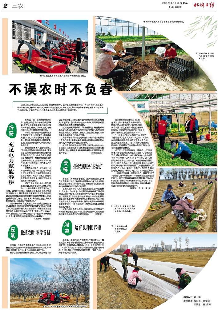 春回大地,萬(wàn)物復(fù)蘇,正是春耕備耕的繁忙時(shí)節(jié)。我市各地積極落實(shí)中央一號(hào)文件精神,搶抓農(nóng)時(shí)開(kāi)展春耕備耕,穩(wěn)面積、提單產(chǎn),推動(dòng)農(nóng)業(yè)高質(zhì)量發(fā)展、綠色發(fā)展,努力為全年糧食和重要農(nóng)產(chǎn)品生產(chǎn)打下良好基礎(chǔ)。廣袤田野上,處處是辛勤耕耘的身影,播種著豐收的希望。