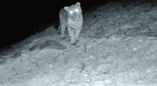 近日,山西省五臺山國有林管理局金崗庫林場的技術(shù)人員在采集紅外相機數(shù)據(jù)時,在五臺縣金崗庫鄉(xiāng)南梁溝村轄區(qū)發(fā)現(xiàn)有華北豹夜間活動的身影。華北豹是國家一級保護野生動物,與褐馬雞、黑鸛、原麝并稱為“山西四大旗艦物種”。這是繼2022年9月在五臺山國有林管理局門限石林場轄區(qū),通過紅外相機發(fā)現(xiàn)華北豹之后,在金崗庫林場轄區(qū)發(fā)現(xiàn)華北豹夜間活動的珍貴影像。