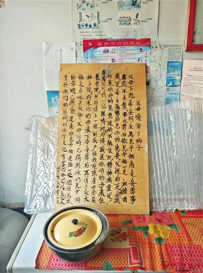 屋子里有他對(duì)孩子們事無(wú)巨細(xì)的囑咐,以及對(duì)孩子們未來(lái)的期待:“做飯開(kāi)此門(mén)為排熱氣,對(duì)房屋人體有益”;“人要常存樂(lè)觀(guān)主義,人生樂(lè)觀(guān)、身心健康,能孝養(yǎng)父母、教育子女如何做人,不與不孝人交,教子女要敬養(yǎng)雙方父母,學(xué)會(huì)懂法、守法”。