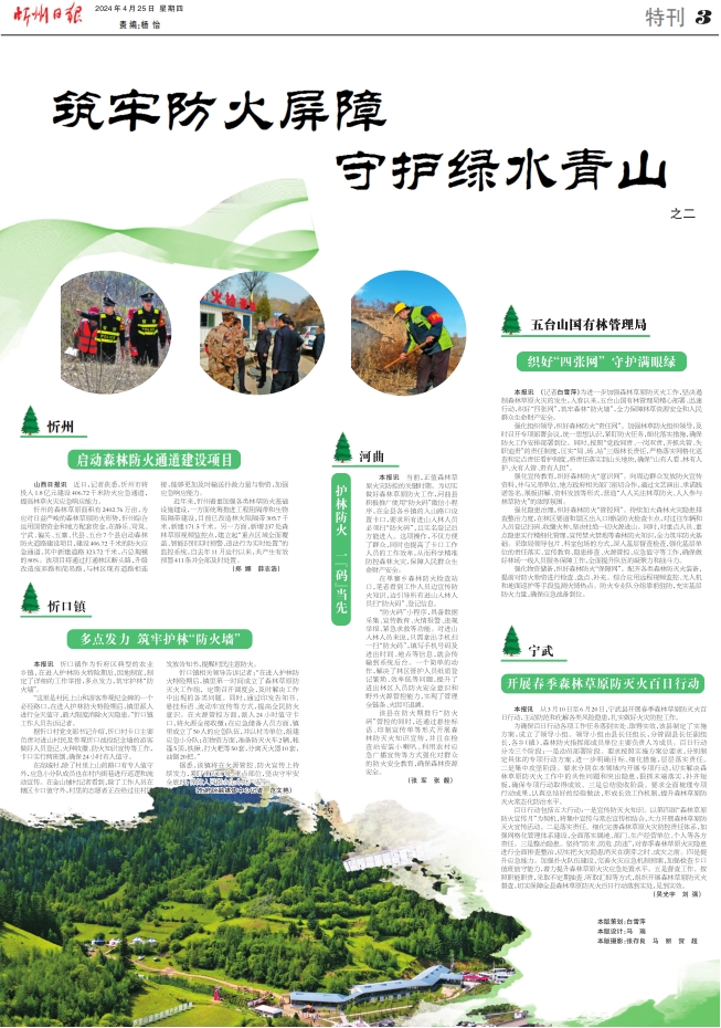 本報(bào)訊 從3月10日至6月20日,寧武縣開展春季森林草原防滅火百日行動(dòng),主動(dòng)防范和化解各類風(fēng)險(xiǎn)隱患,扎實(shí)做好火災(zāi)防控工作。