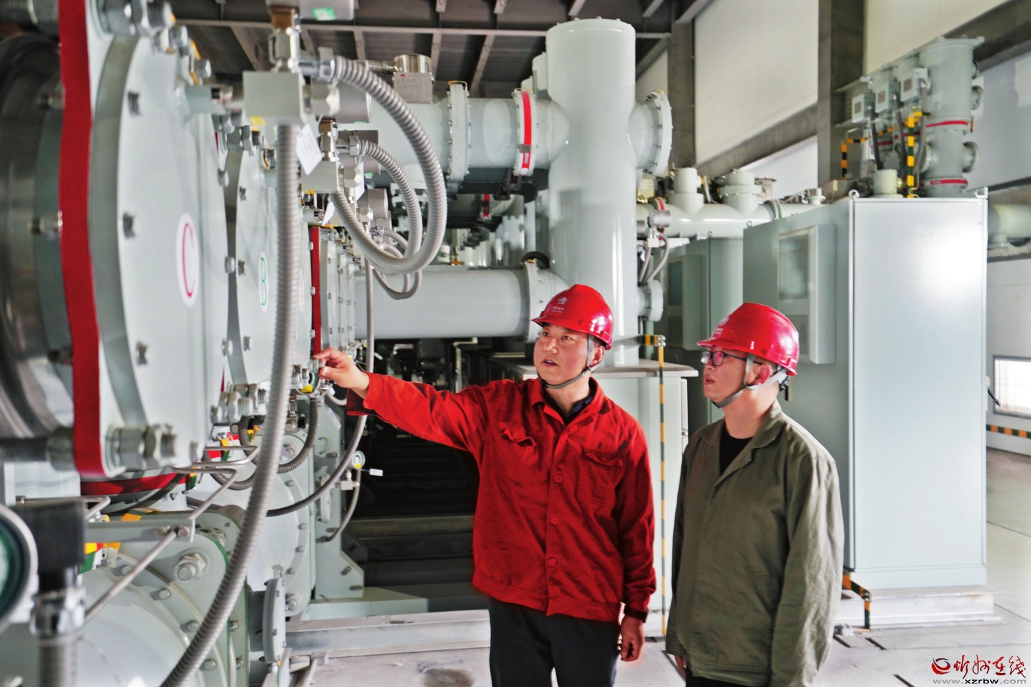 國網(wǎng)忻州供電公司工作人員在變電站進(jìn)行投產(chǎn)前驗(yàn)收準(zhǔn)備作業(yè)。 邊 武 馬亞運(yùn)攝