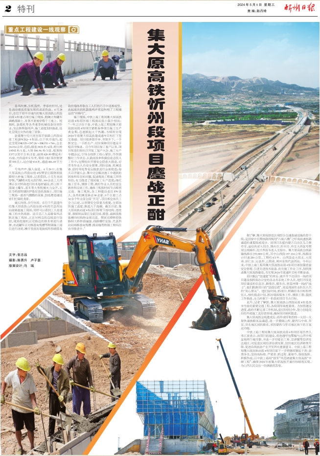 春風(fēng)吹拂,生機(jī)盎然。季春的忻州,處處涌動(dòng)著高質(zhì)量發(fā)展的滾滾熱浪。4月28日,在位于原平市境內(nèi)的集大原高鐵山西段站前4標(biāo)重點(diǎn)項(xiàng)目施工現(xiàn)場(chǎng),數(shù)輛大型罐車(chē)滿載混凝土,有條不紊地穿梭于工地上。挖掘機(jī)、裝載機(jī)等各類(lèi)重型機(jī)械設(shè)備協(xié)同作業(yè),發(fā)出陣陣轟鳴聲,施工進(jìn)度加快推進(jìn),處處呈現(xiàn)出火熱的施工景象。
