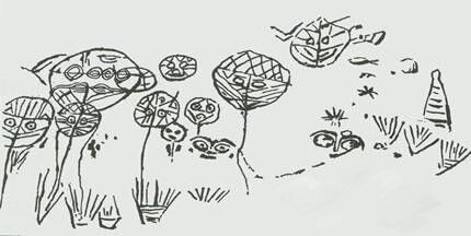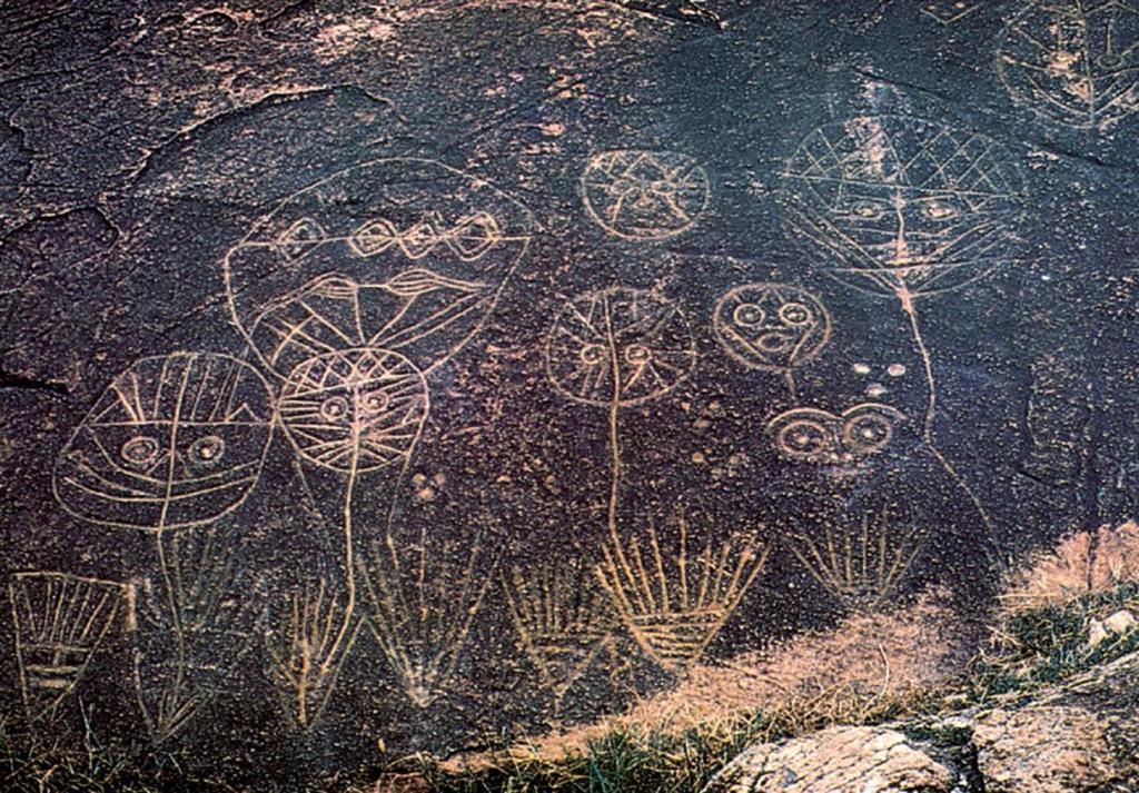 (上圖:新石器時代《稷神崇拜圖》;下圖:《稷神崇拜圖》復原圖。)