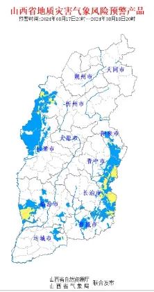 山西省自然資源廳和山西省氣象局2024年8月17日17時05分聯(lián)合發(fā)布地質(zhì)災(zāi)害氣象風(fēng)險預(yù)警:受較強降水影響,預(yù)計2024年8月17日20時至18日20時,陽泉市郊區(qū)、平定縣;長治市潞城區(qū)、平順縣、黎城縣、壺關(guān)縣、武鄉(xiāng)縣;晉中市左權(quán)縣、和順縣、昔陽縣;運城市垣曲縣;忻州市五寨縣、岢嵐縣、河曲縣、保德縣;臨汾市吉縣、鄉(xiāng)寧縣;呂梁市離石區(qū)、興縣、臨縣等地的部分區(qū)域地質(zhì)災(zāi)害氣象風(fēng)險預(yù)警等級為三級黃色,有較高地質(zhì)災(zāi)害氣象風(fēng)險。請相關(guān)部門做好地質(zhì)災(zāi)害防治工作。