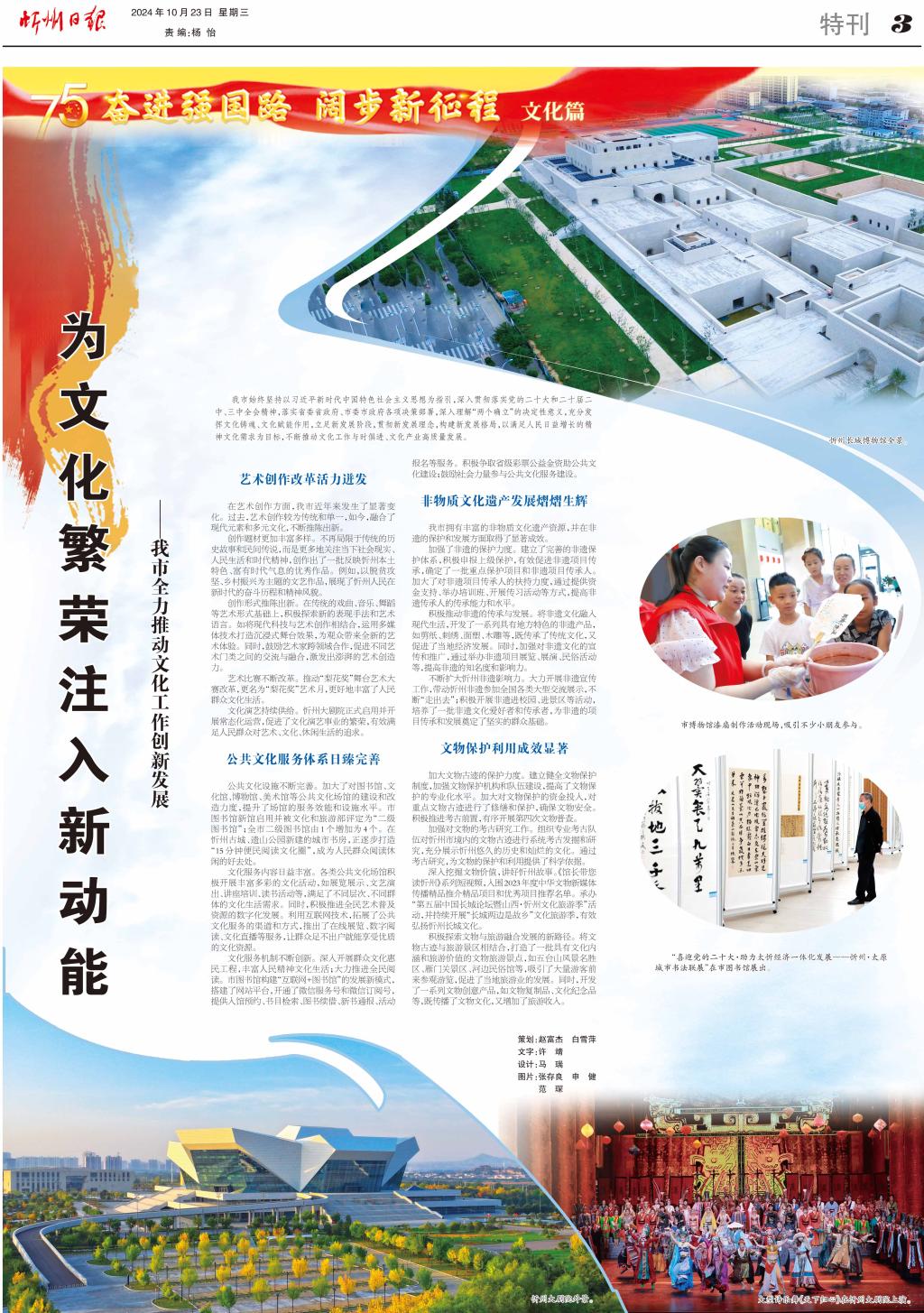 我市始終堅(jiān)持以習(xí)近平新時(shí)代中國特色社會主義思想為指引,深入貫徹落實(shí)黨的二十大和二十屆二中、三中全會精神,落實(shí)省委省政府、市委市政府各項(xiàng)決策部署,深入理解“兩個(gè)確立”的決定性意義,充分發(fā)揮文化鑄魂、文化賦能作用,立足新發(fā)展階段,貫徹新發(fā)展理念,構(gòu)建新發(fā)展格局,以滿足人民日益增長的精神文化需求為目標(biāo),不斷推動文化工作與時(shí)俱進(jìn)、文化產(chǎn)業(yè)高質(zhì)量發(fā)展。