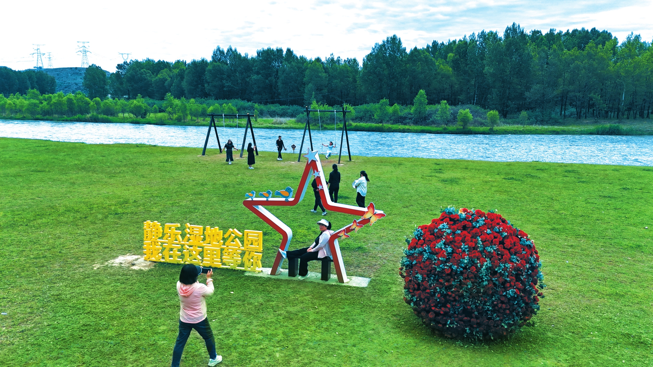 靜樂汾河川國家濕地公園的特色“網(wǎng)紅打卡點”吸引游客駐足拍照