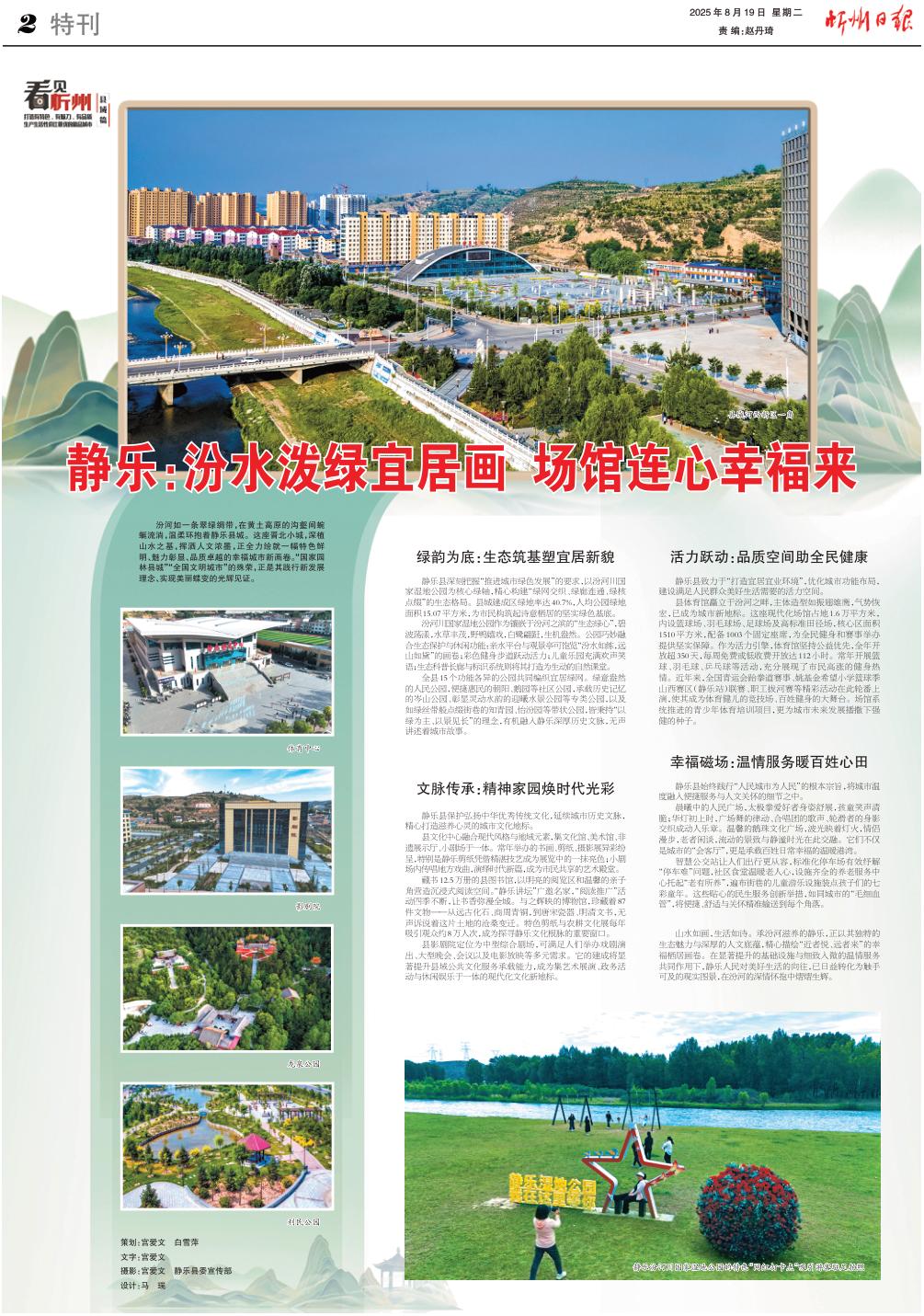 汾河如一條翠綠綢帶,在黃土高原的溝壑間蜿蜒流淌,溫柔環(huán)抱著靜樂縣城。這座晉北小城,深植山水之基,揮灑人文濃墨,正全力繪就一幅特色鮮明、魅力彰顯、品質(zhì)卓越的幸福城市新畫卷。“國家園林縣城”“全國文明城市”的殊榮,正是其踐行新發(fā)展理念、實現(xiàn)美麗蝶變的光輝見證。