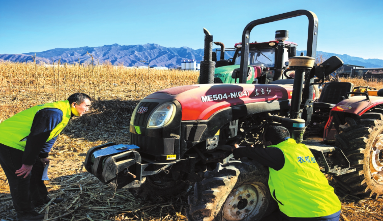 技術人員正對拖拉機進行全面“體檢”。 郭婧蕾攝