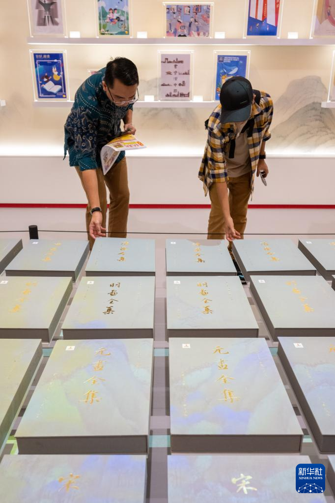 5月26日,觀眾在馬來西亞吉隆坡舉行的第40屆吉隆坡國際書展上參觀“中國歷代繪畫大系”特展。新華社記者 朱煒 攝