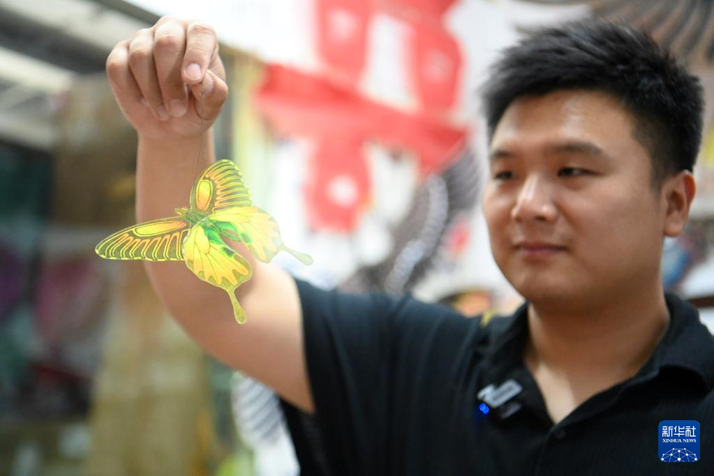 出身風(fēng)箏世家的魏博文大學(xué)畢業(yè)后,回到家鄉(xiāng)跟隨父親魏國秋“入行”做風(fēng)箏。他從自己有所基礎(chǔ)的繪畫著手,發(fā)揮年輕人的創(chuàng)新優(yōu)勢,在風(fēng)箏設(shè)計(jì)上屢屢出新,不僅與一些游戲公司合作推出風(fēng)箏聯(lián)名款,還推動風(fēng)箏制作技藝的改進(jìn)創(chuàng)新,設(shè)計(jì)了適合在室內(nèi)放飛的迷你風(fēng)箏。