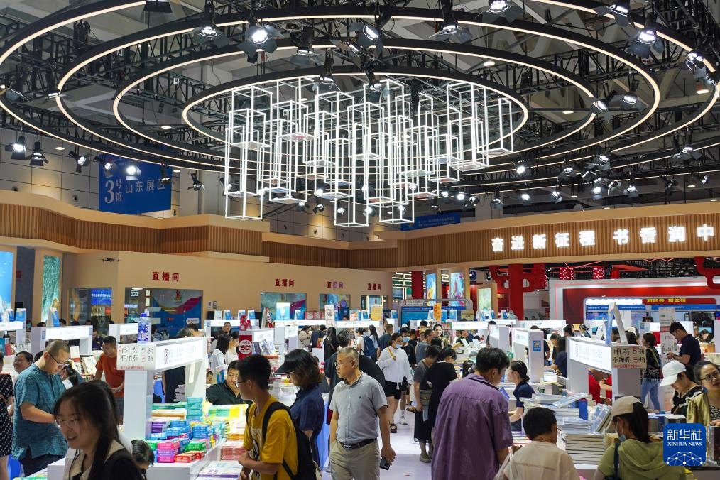 連日來,在山東濟南舉行的第31屆全國圖書交易博覽會吸引了大批讀者前來閱覽選購。本屆書博會以“奮進新征程 書香潤中華”為主題,來自全國各省(區(qū)、市)和港澳臺的1700多家出版印刷發(fā)行單位參展,線上線下共展出各類出版物70多萬種。(新華社記者 朱崢 攝)