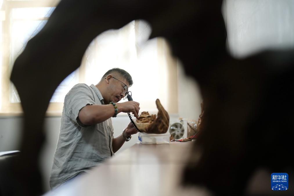 近年來,河北省唐山市玉田縣不斷加大對當(dāng)?shù)胤俏镔|(zhì)文化遺產(chǎn)的傳承和保護(hù)力度,建設(shè)“非遺會客廳”,內(nèi)設(shè)傳承人工作室、非遺體驗工坊等場所,將玉田泥塑、玉田木雕、皮影戲、剪紙等非物質(zhì)文化遺產(chǎn)項目集中展示,并致力于非遺文創(chuàng)產(chǎn)品的開發(fā),為市民提供了能夠近距離感受非遺魅力的新型公共文化空間。(新華社記者 牟宇 攝)