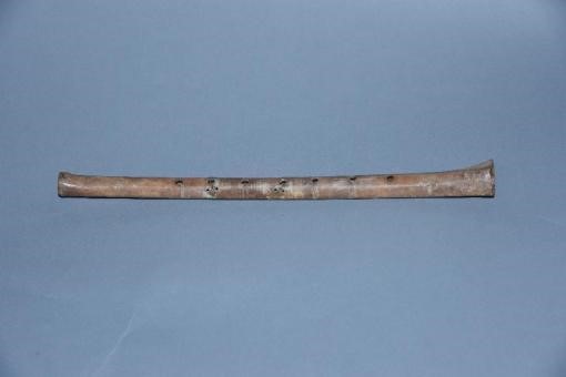 展覽中,一件出土于河南省漯河市舞陽縣賈湖遺址的賈湖骨笛吸引了不少觀眾的目光。據(jù)介紹,骨笛以鶴類動物的尺骨鉆孔而成,是迄今為止我國發(fā)現(xiàn)最早、保存最完整的管樂器。