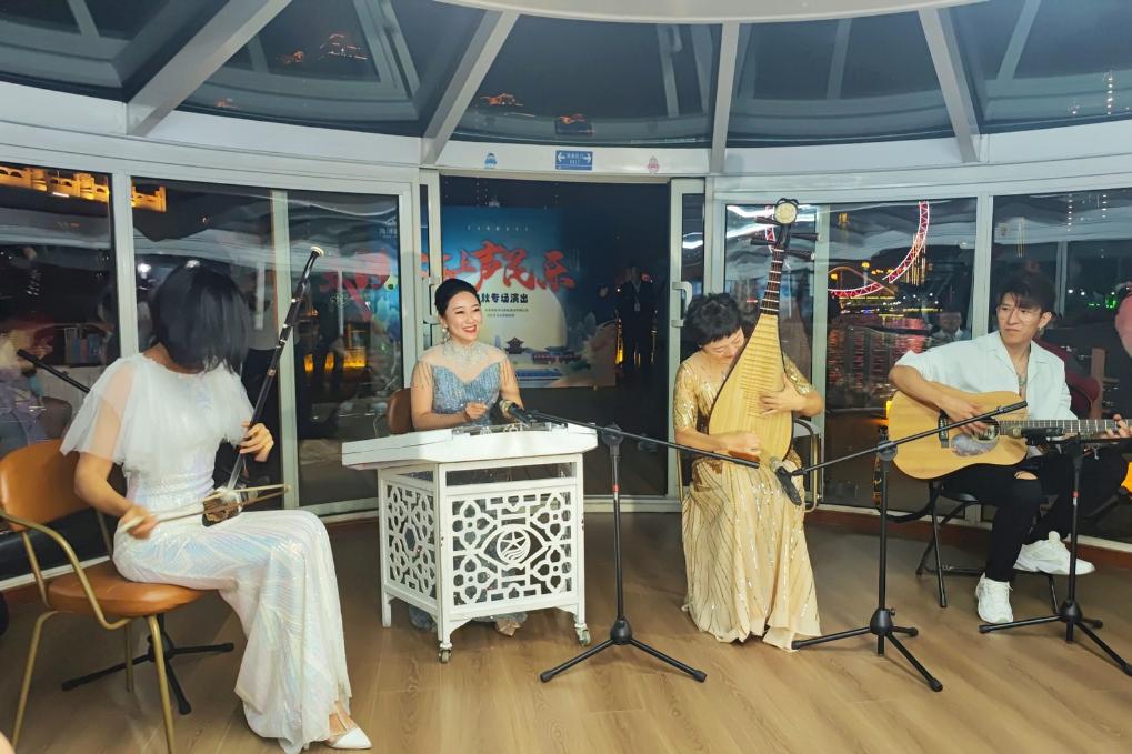 這是天津海河游船上舉行的“海上聲民樂”演出。新華社記者 宋瑞 攝