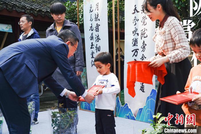“認領(lǐng)一顆桂花樹苗”證書頒發(fā)現(xiàn)場。 西湖街道 供圖